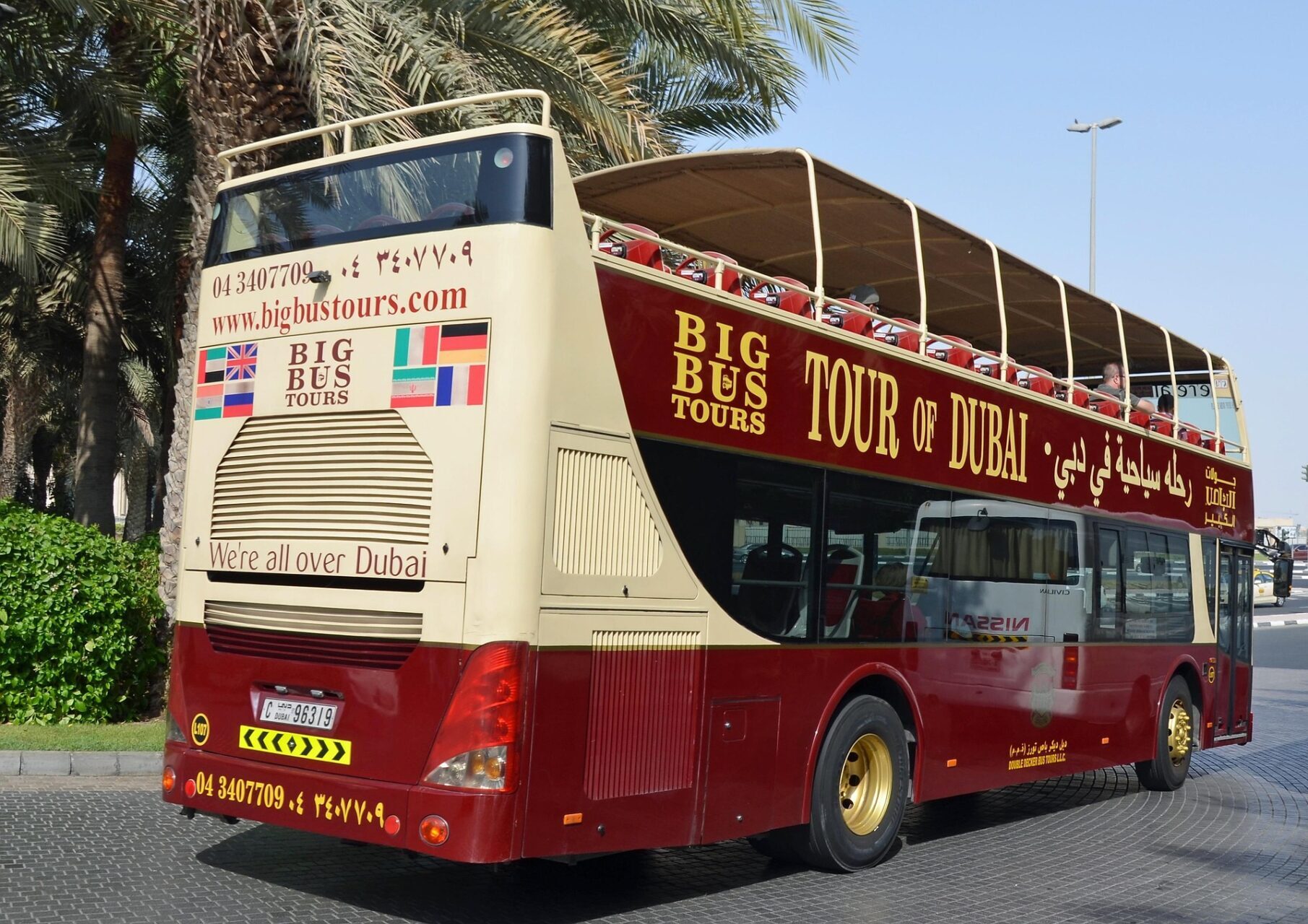 Open-top Big Bus Tours vehicle offering sightseeing tours of Dubai